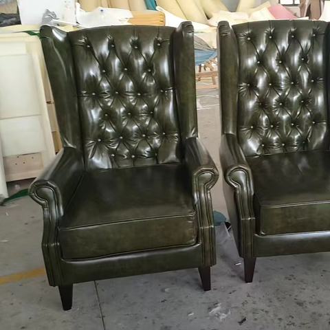 เก้าอี้เน้นความโดดเด่นด้านหลังตัวสูงพร้อมกระดุมหุ้มหนังแท้แบบเต็มรูปแบบสำหรับพักผ่อนในอพาร์ทเมนต์โรงแรมวิลล่าหรือการประชุมเชิงปฏิบัติการ