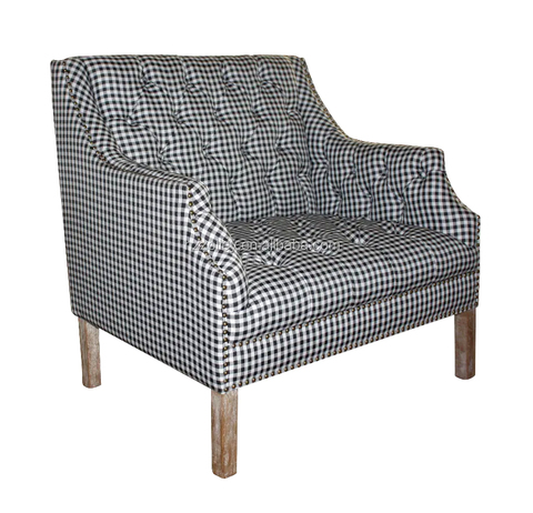 Poltrona con motivo a scacchi in bianco e nero con decorazione rivetto resistente sedia per il tempo libero per la casa