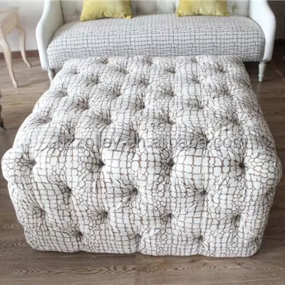 프랑스 retro 거실 가구 사각 고품질 직물 tufted 오토만, 직물 사각 덮개를 씌운 커피용 탁자