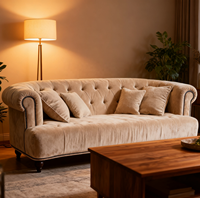 Kraliyet ışık lüks tarzı krem renk aşk koltuk kumaşı kanepe düğmesi püsküllü Chesterfield kanepe