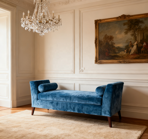 Französische Luxus-Schlafzimmerbank aus Königsblauem Samt