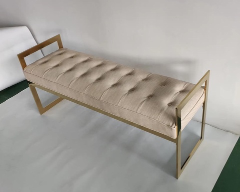 Beige Stoff Tufted Bank mit Gold rahmen Elegante Hocker & Osmanen