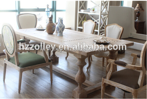 ชุดโต๊ะรับประทานอาหารไม้โอ๊คโบราณเฟอร์นิเจอร์บ้านสไตล์ฝรั่งเศสแบบเรียบง่ายไม้เนื้อแข็งขายส่งสำหรับโรงแรม