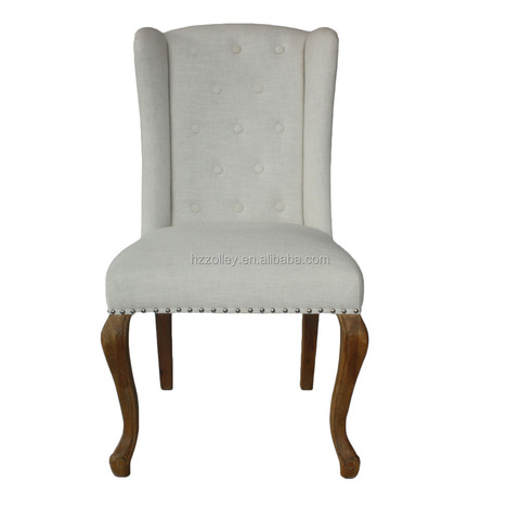 Francês Provincial Home Furniture White Linen Dining Side Chair com cadeiras de trono de madeira para uso do restaurante