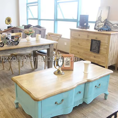 โต๊ะกลางน้ำชาและกาแฟทำจากไม้โอ๊คทาสีขาวแบบดั้งเดิมหรูหราเฟอร์นิเจอร์บ้านไม้เนื้อแข็งสำหรับห้องนั่งเล่น